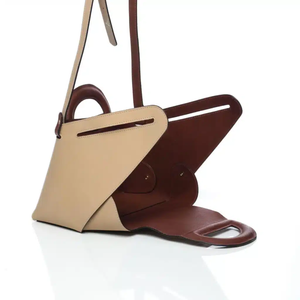 La collection Kameleoon, lancée en 2024, propose donc des sacs en deux coloris pour un seul produit. Les créations s’inspirent des motifs architecturaux des mosquées tunisiennes et intègrent des éléments emblématiques comme l’arabesque ou le trèfle, symboles de beauté et de chance. Les sacs sont fabriqués avec des matières comme le cuir et le cannage en fibre naturelle.